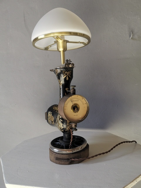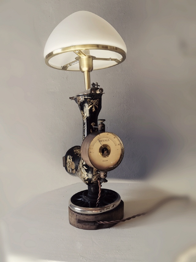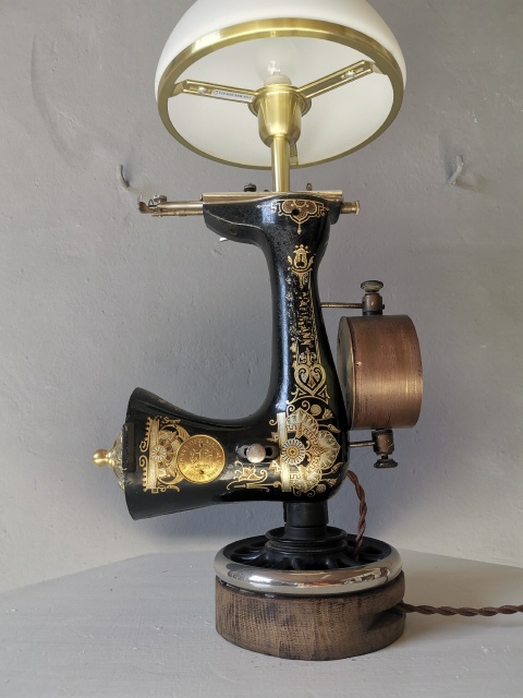 Nun sollte sie weichen, und da die nette Dame meine Arbeiten auf einer Ausstellung sah, dachte Sie an mich und übergab mir die Nähmaschine, doch auch etwas hübsches draus zu machen. Ich hoffe ich bin dieser Bitte gebührend nachgekommen.