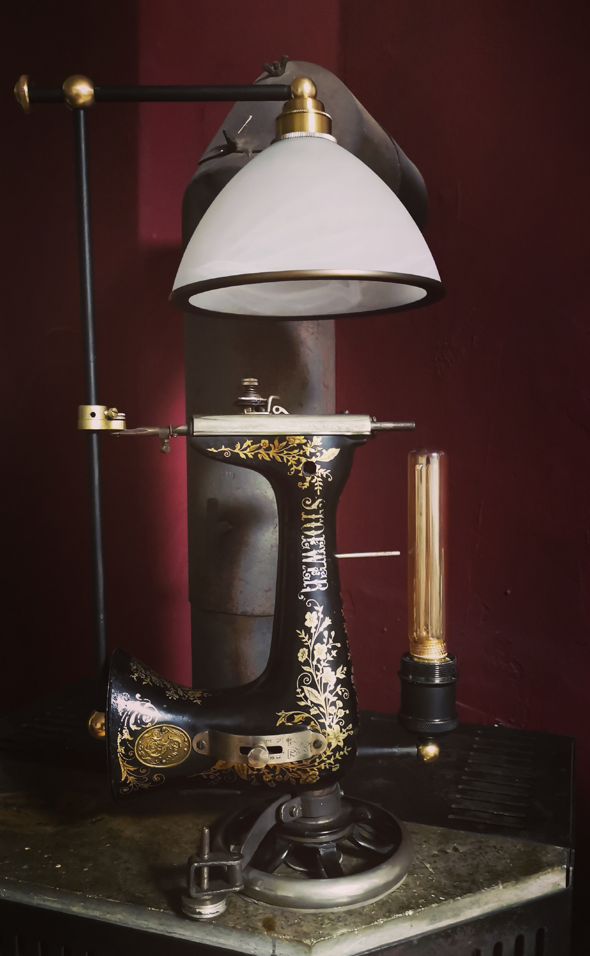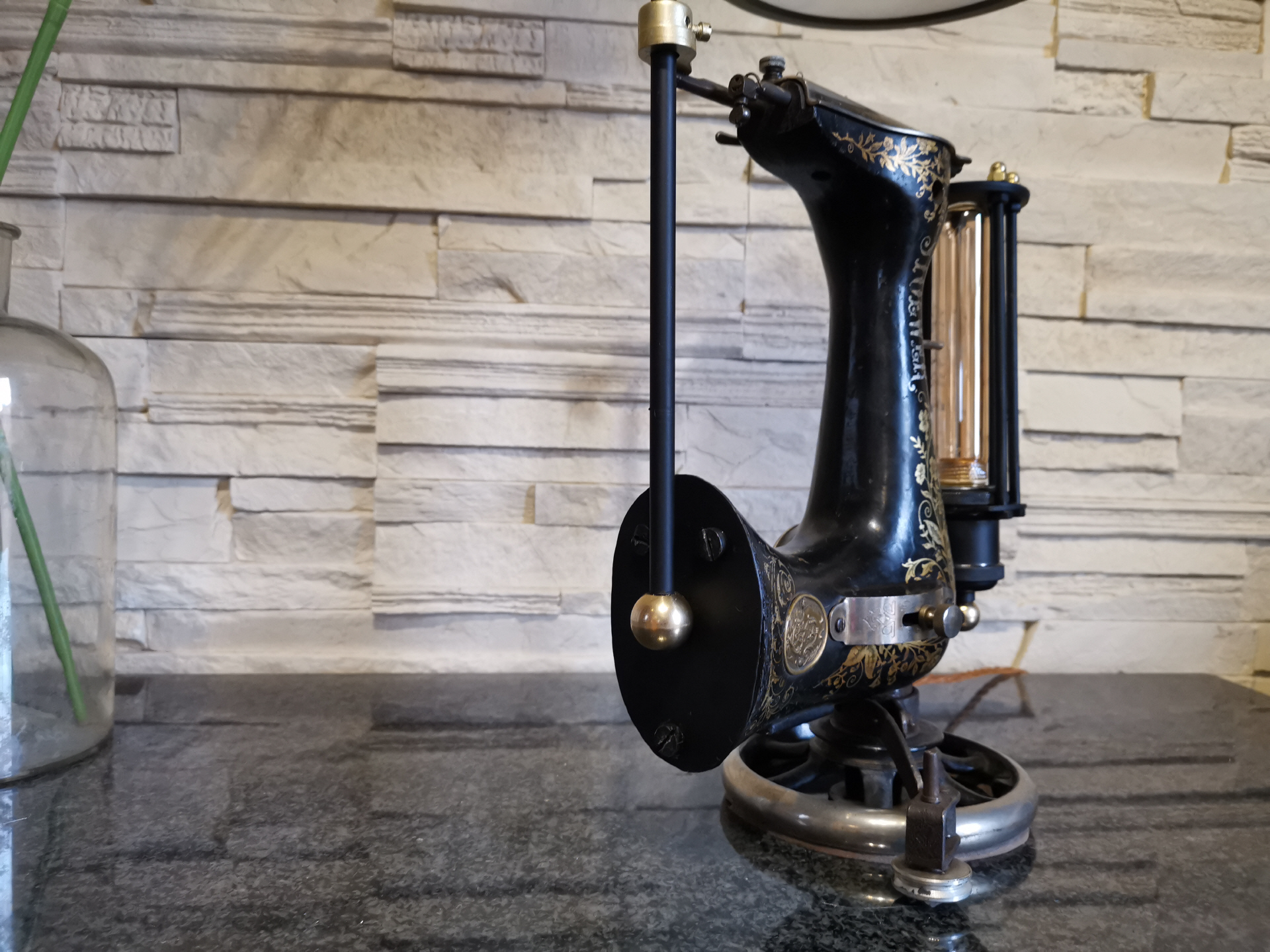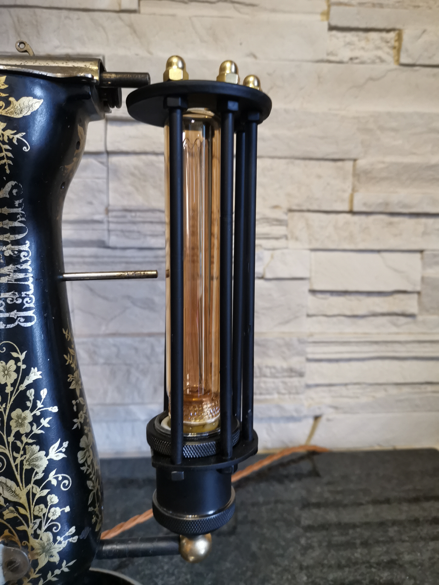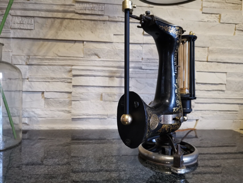 Sie ist meine erste Nähmaschine die ich zu einer Lampe umgebaut habe.