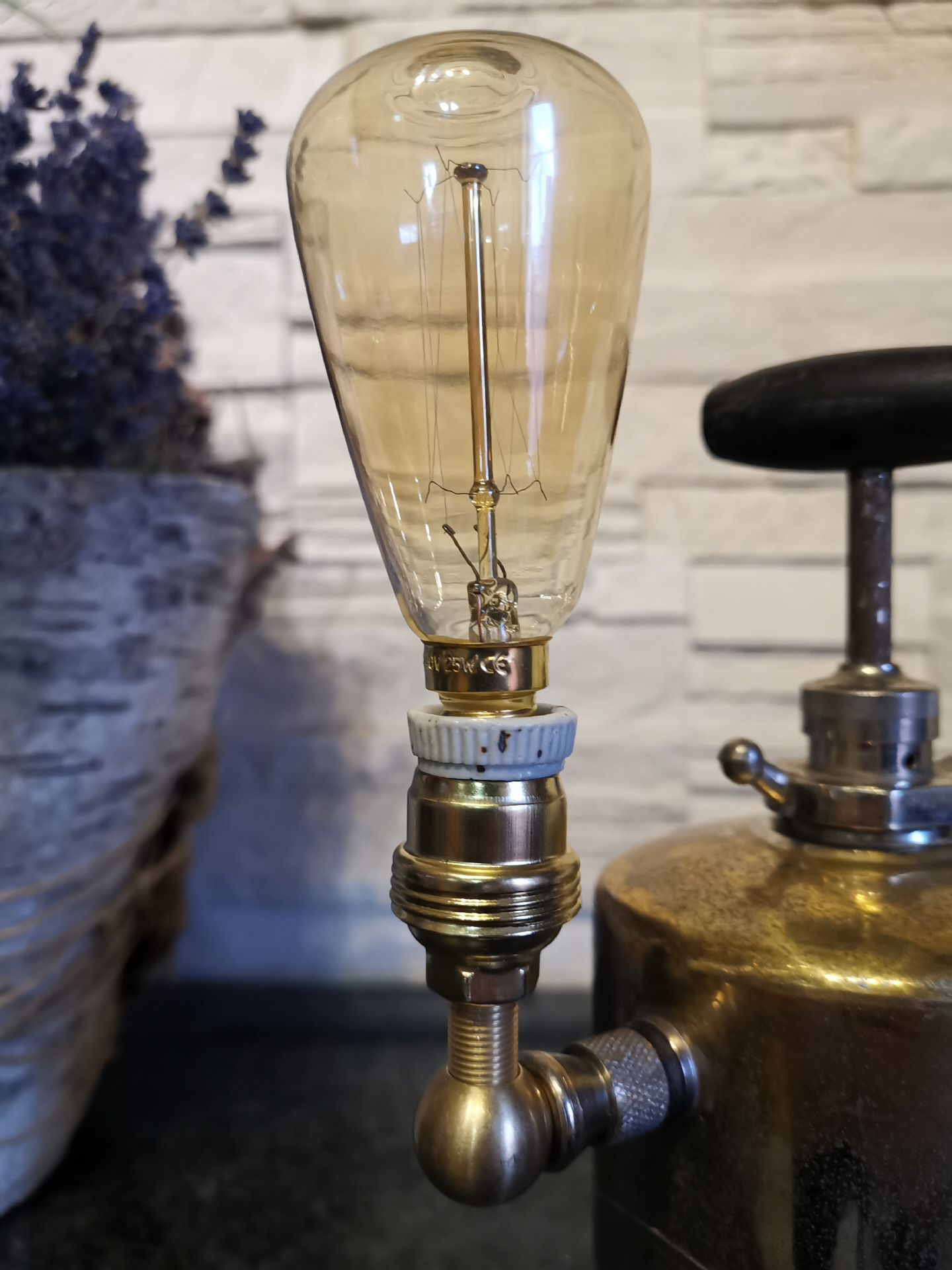Gesagt getan, und nach einigen Umbausarbeiten präsentiert sich dieser schöne Zerstäuber als wunderschöne Lampe. Natürlich mit Touch Dimmer wie es sich gehört. Das Leuchtmittel mit seinen 4 Fäden ergibt ein warmes Licht und verstetzt jeden Raum in romantsche Stimmung.