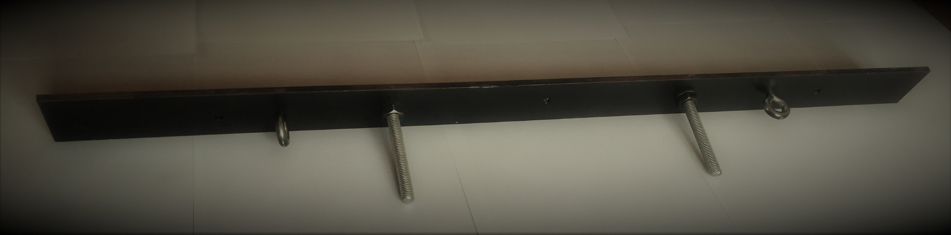 Der Träger wurde auf Anraten eines Freundes (Danke Ralph) in ordentlicher Materialstärke erstellt. er hat folgende Maße: Länge 750mm, Breite 50mm, Stärke 5mm. Dort wurden dann von mir Gewinde reingeschnitten um einmal die Gewindestangen (M10) einzusetzen, als auch die beiden Ösen für die Karabinerhaken.
