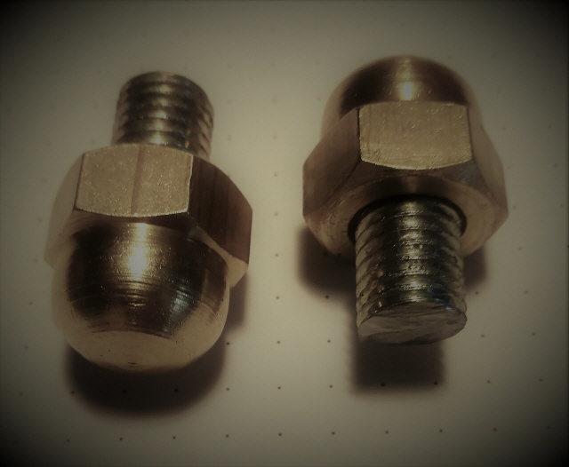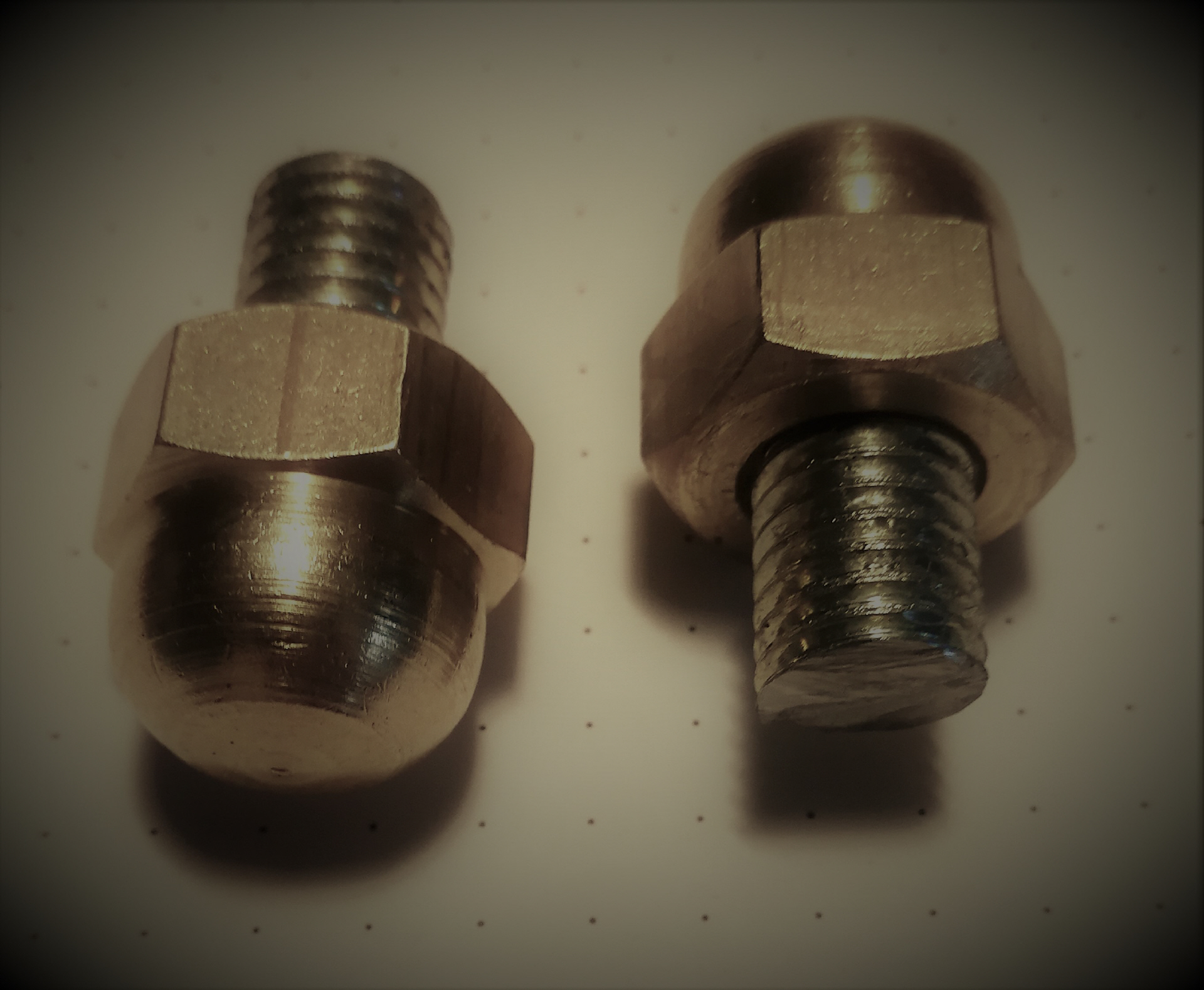 Nein war nur Spaß, in der Zeit wurde natürlich ein Stück von der Gewindestange abgesägt, danach mit etwas Metallkleber in den Hutmuttern eingesetzt. Damit hat man die Möglichkeit zusätzliches Gewicht in die Hohlkugel zu bringen und ggf. wieder raus zu lassen. Wie sich dann herausstellte eine super Idee, da die Berechnung der Zusatzgewichts völlig falsch und zu niedrig wahr. Statt Vogelsand oder Zucker zu verwenden, mussten doch Bleikugeln (ca. 2 kg) her um die gewünschte Höhe einstellen zu können.