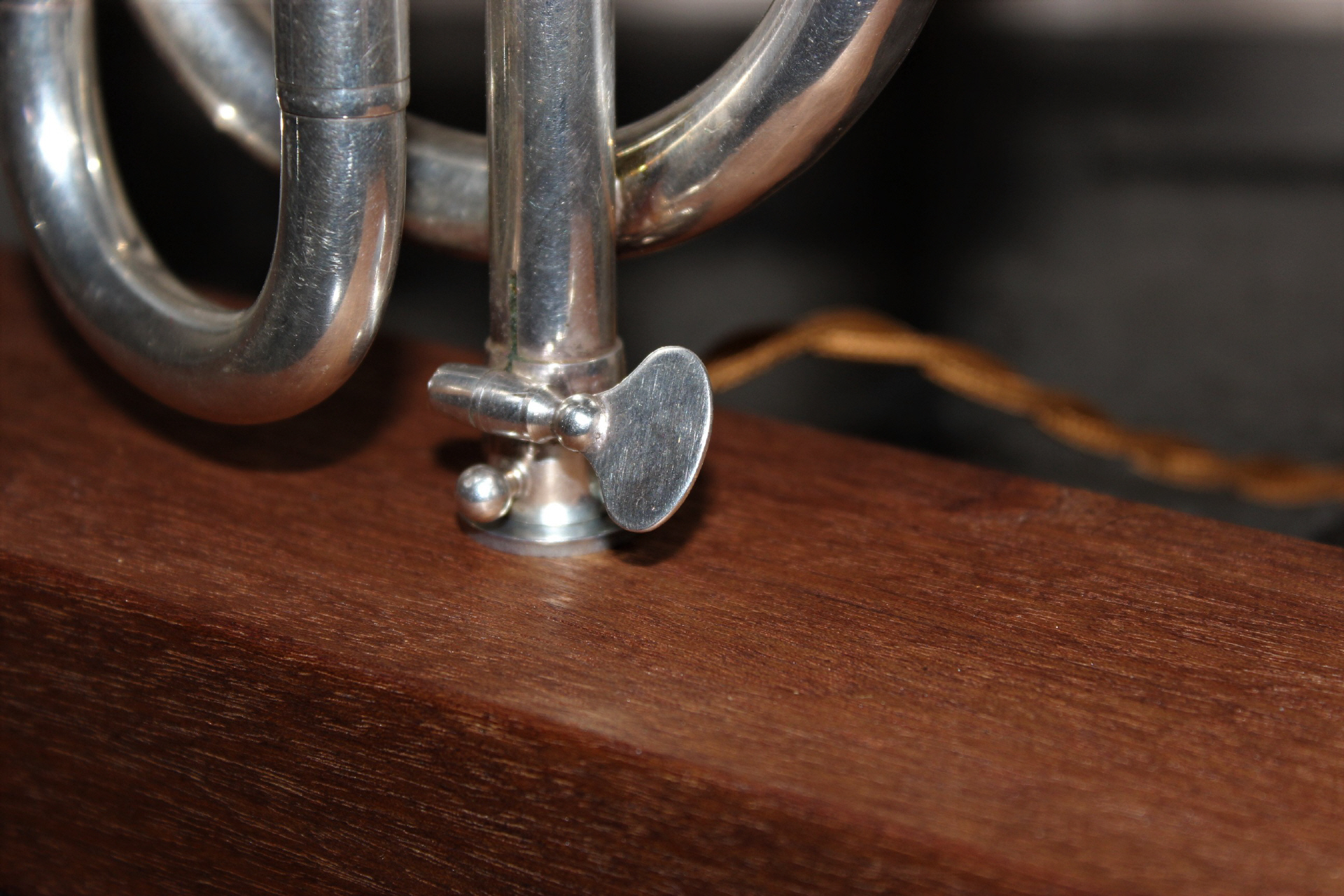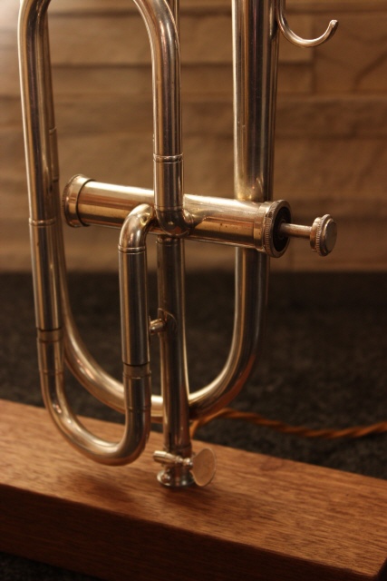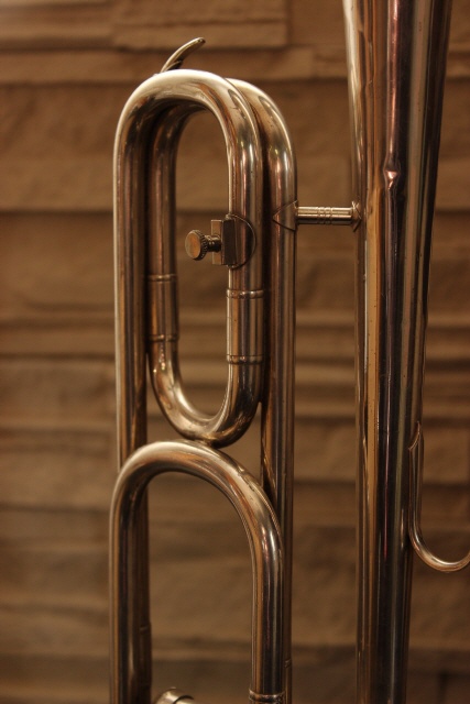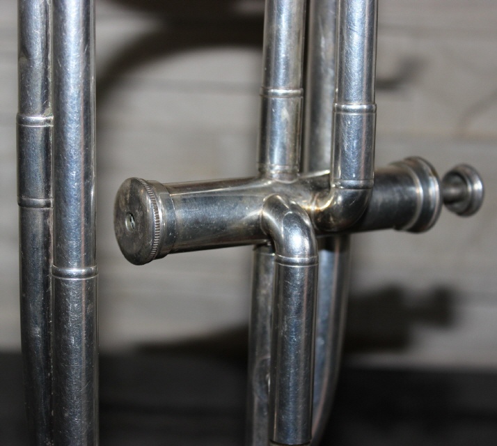 So nun also mal eine etwas andere Variante, nicht in Messing sondern in Silber präsentiert sich diese Fanfaren-Trompete mit einem Ventil.