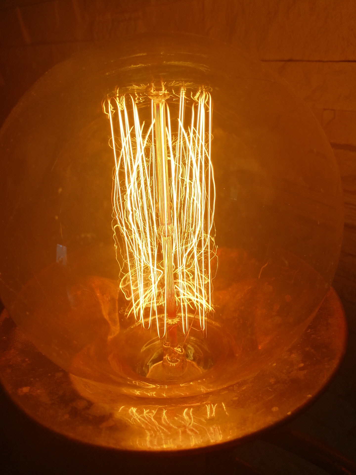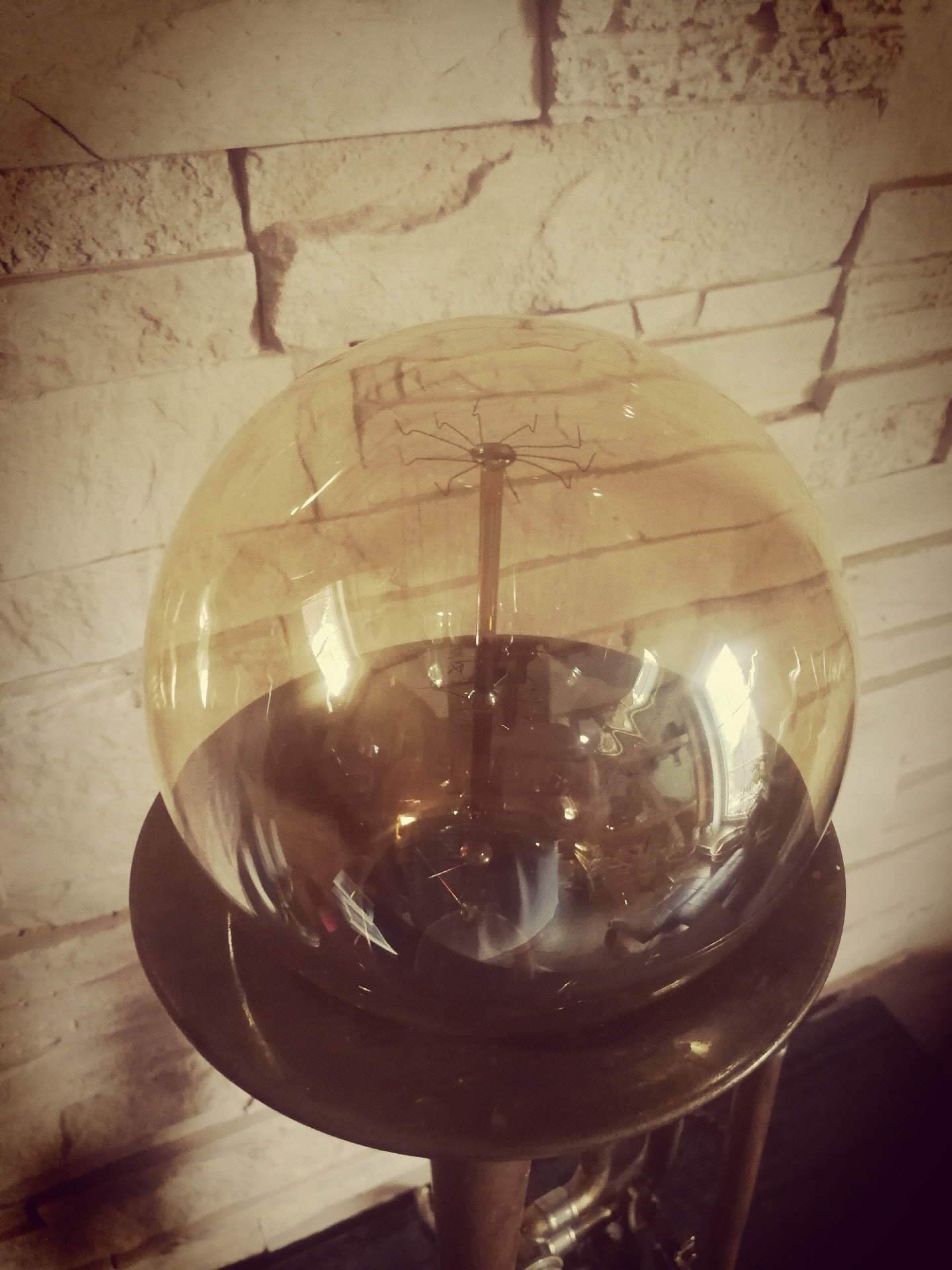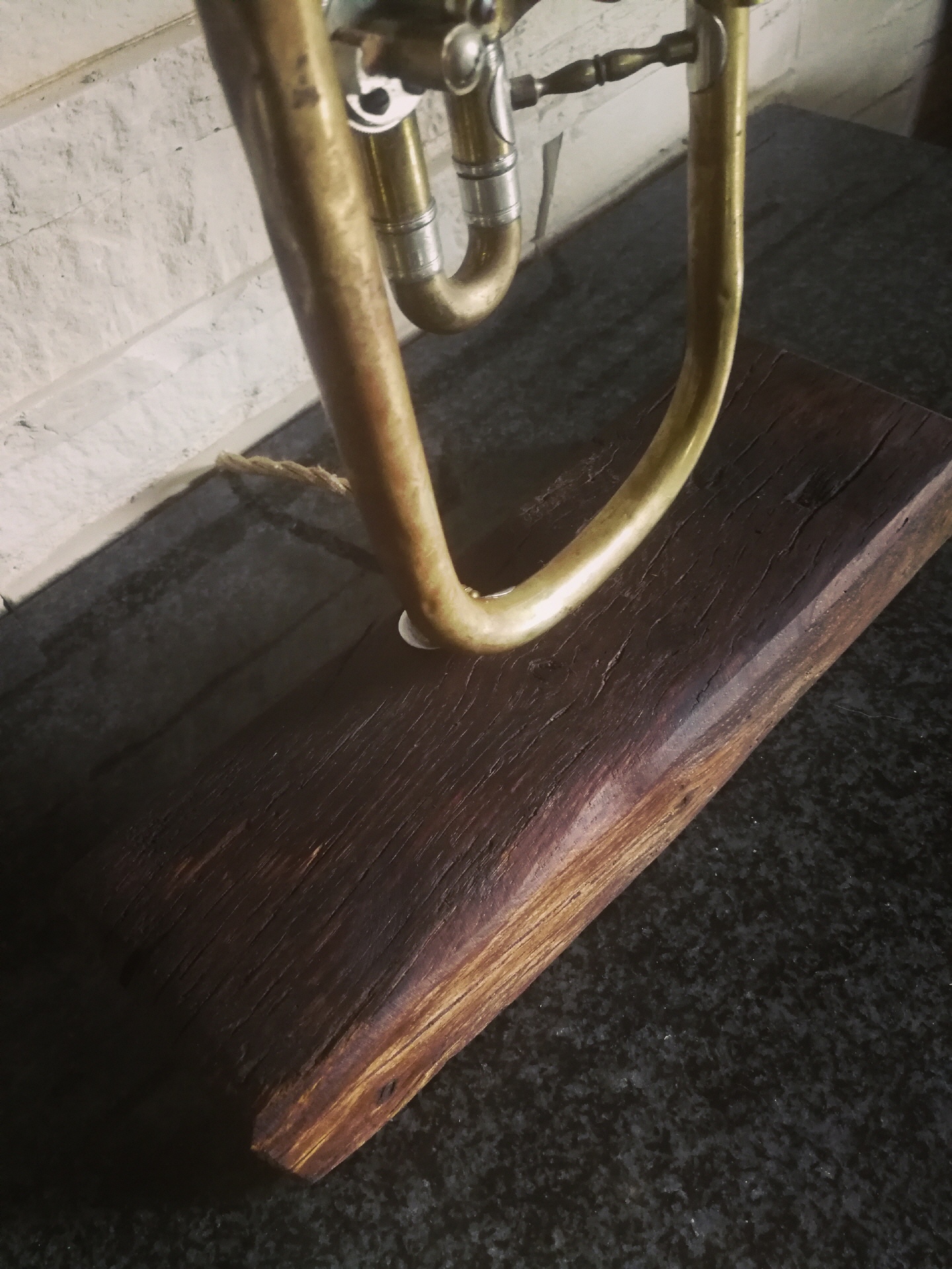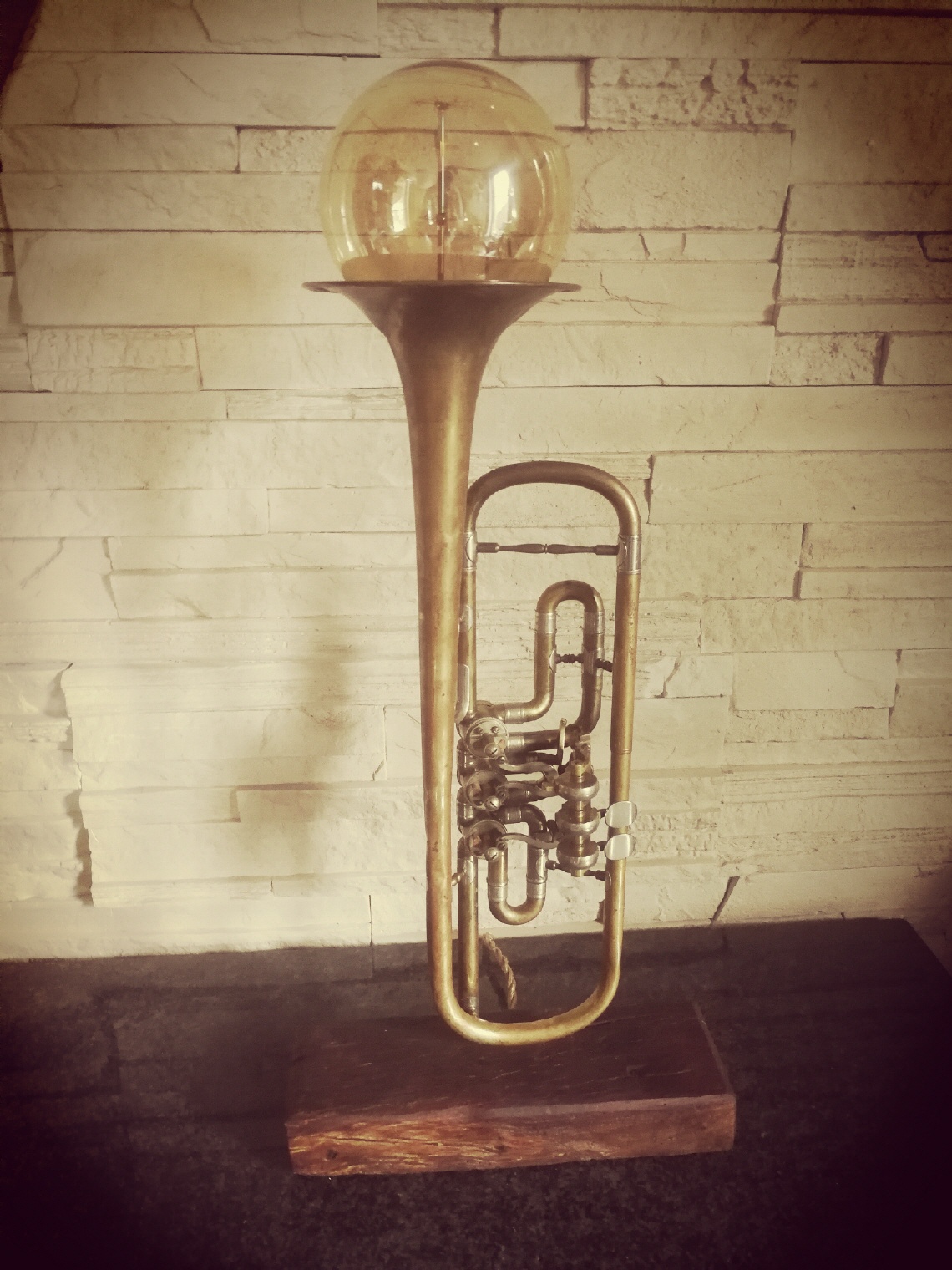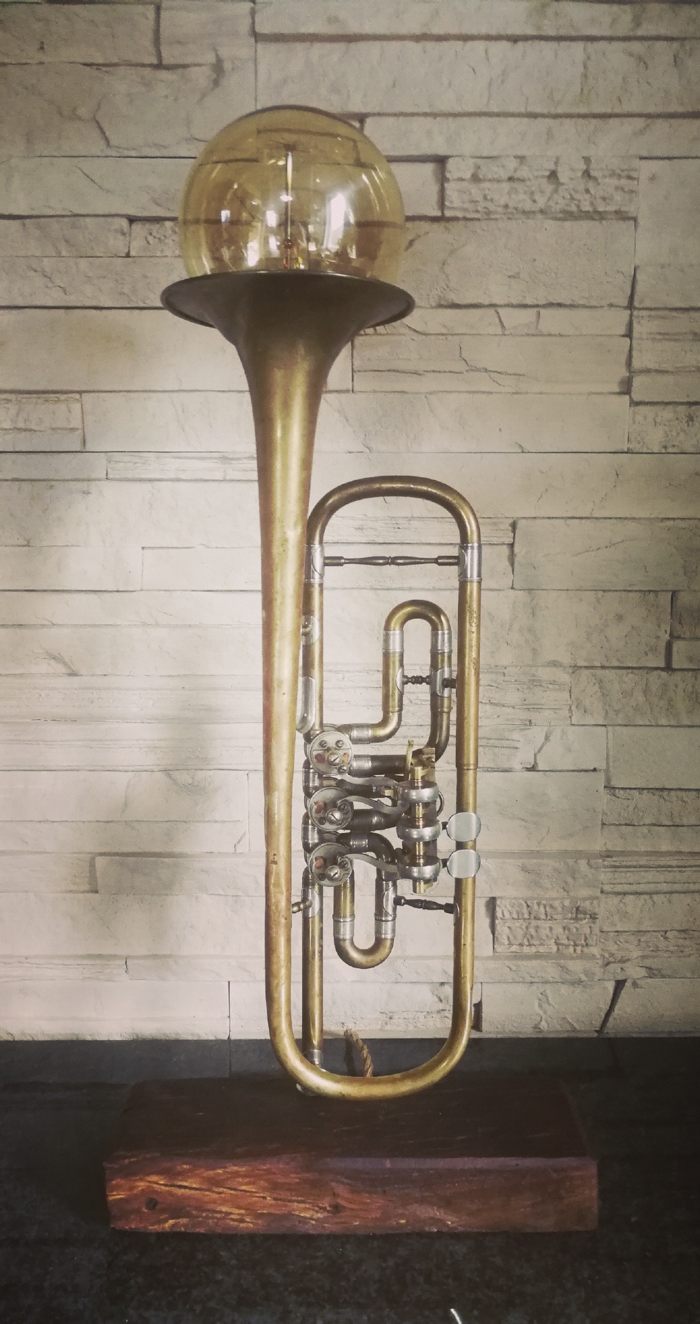 Aus einer alten Tropete habe ich einen echten Hingucker gezaubert. Mit einer Edison-Globe Lampe die toll zu der Patina der Tropete passt.