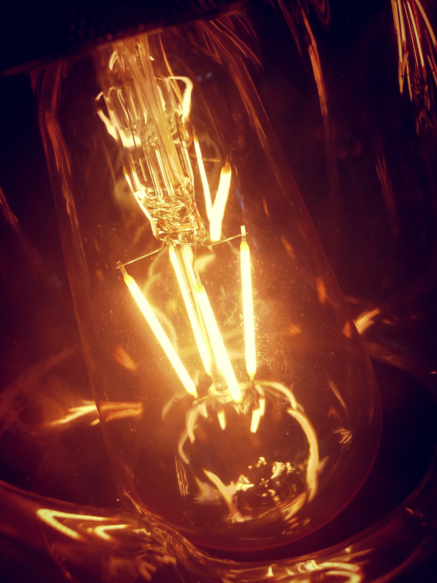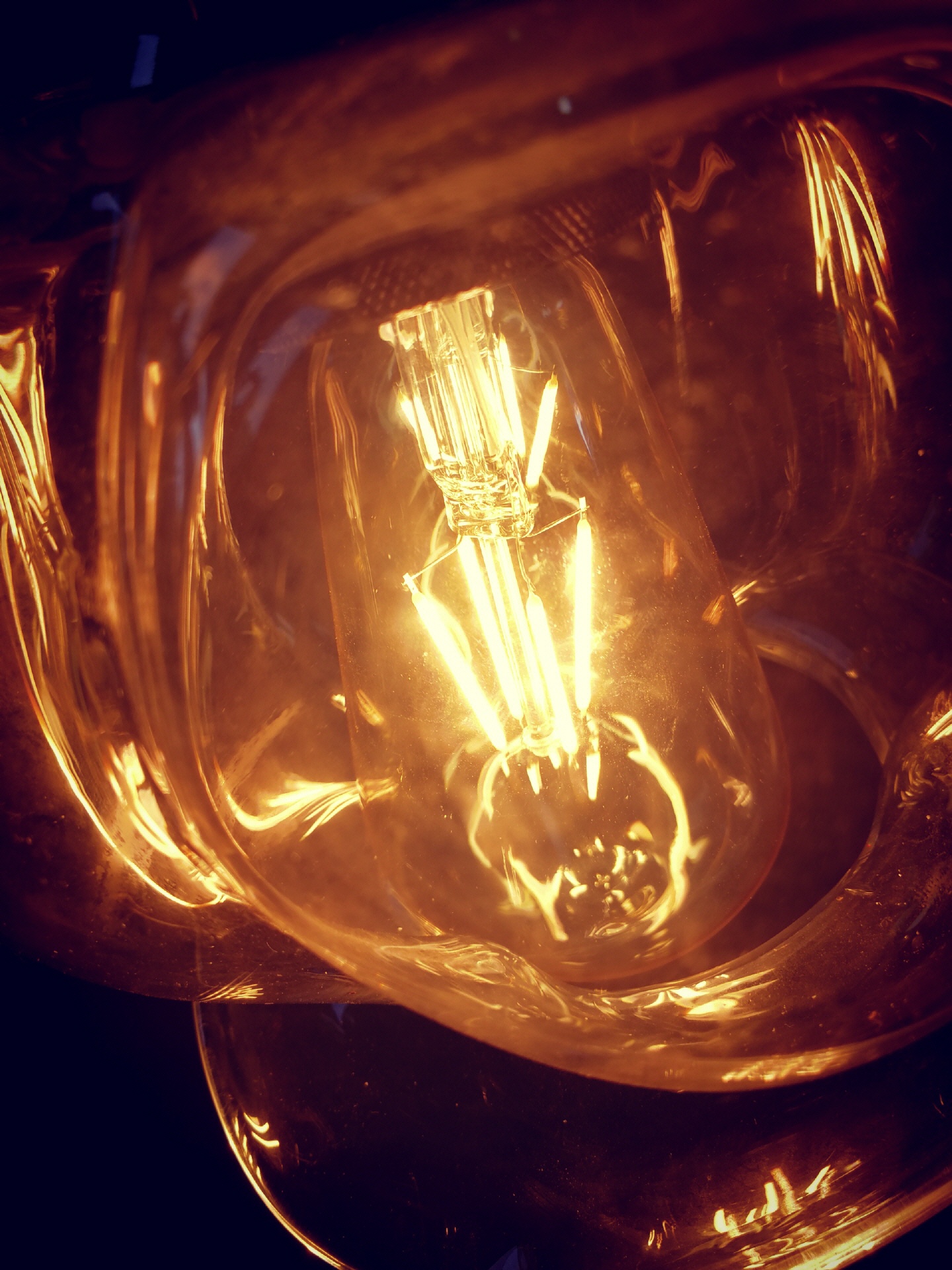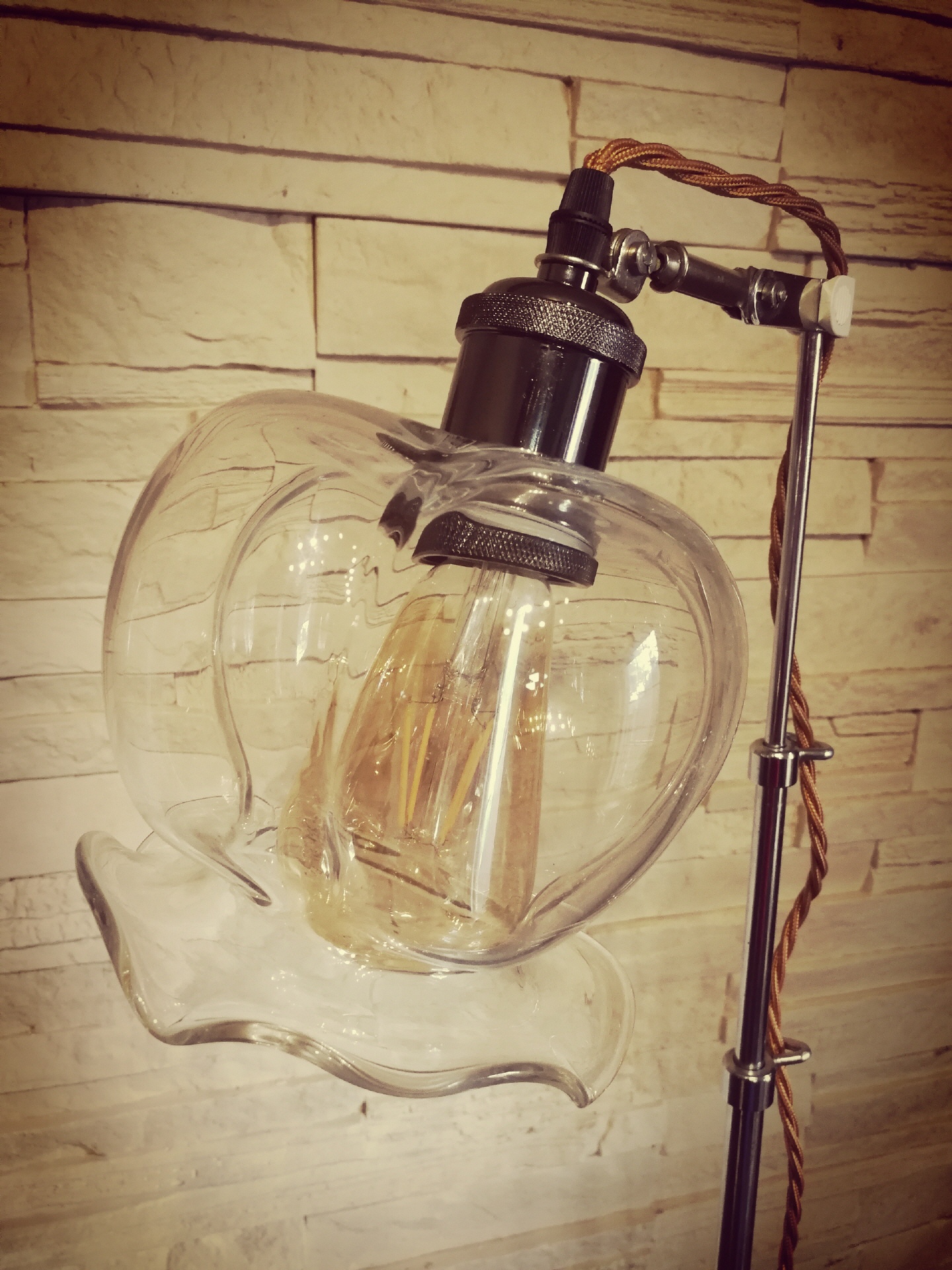 Mit einer Vase die zu einem Lampenschirm umfunktioniert wurde.